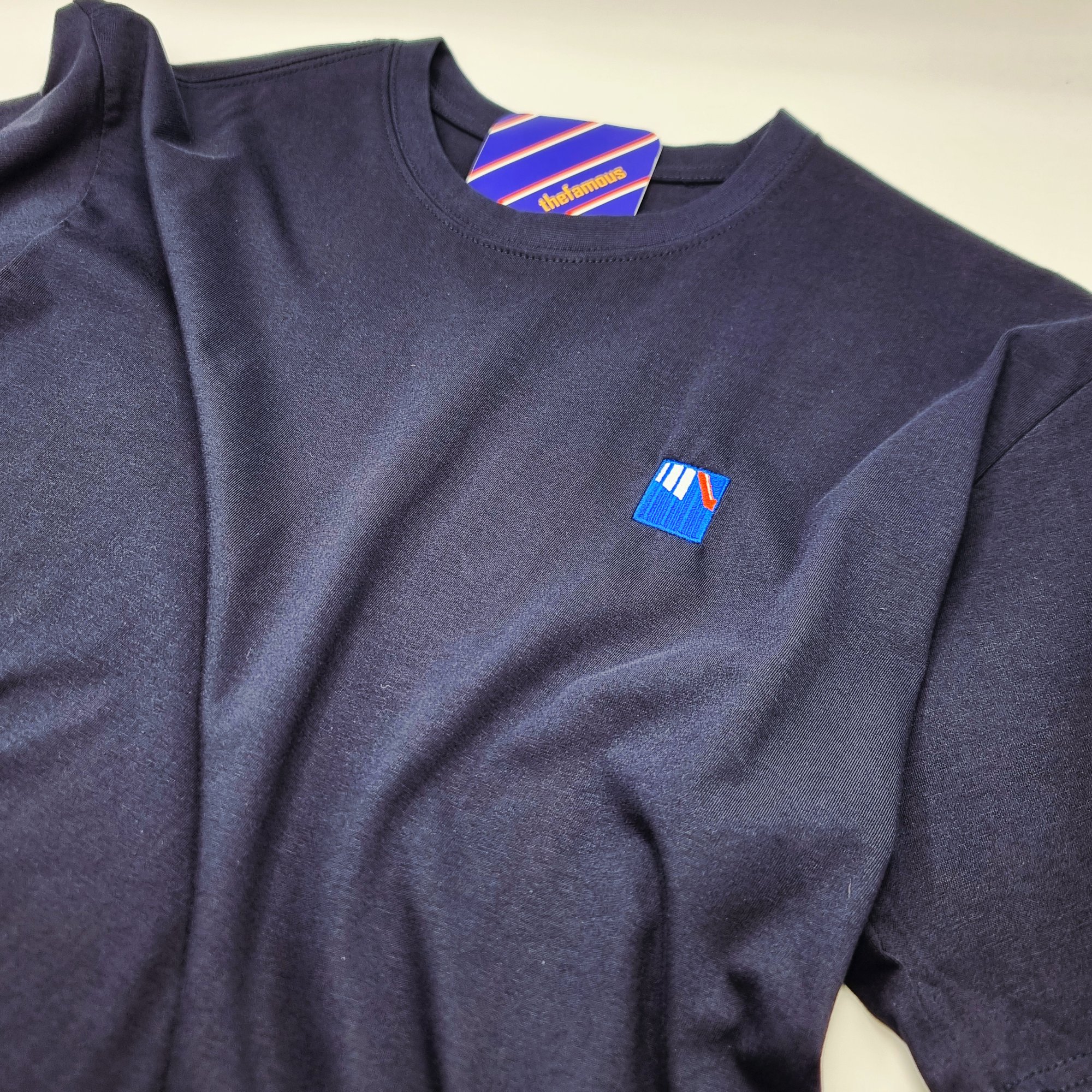 Navy unisex T-shirt with high quality detailed embroidered logo in red, white & royal blue.