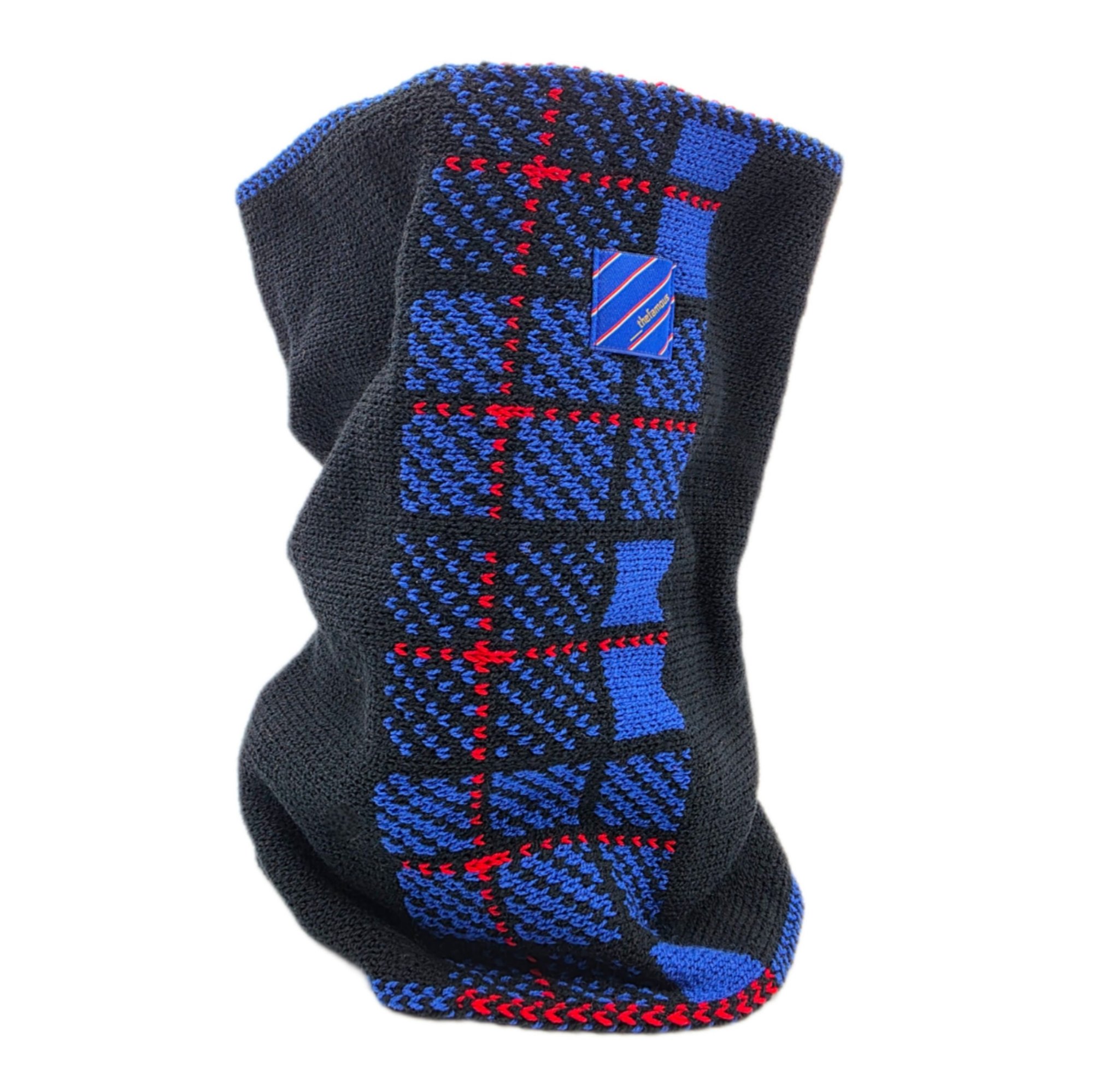 100% Designed, knit & hand finished in Scotland from from super soft Cashmilon Yarn & luxury Merino Wool, this is a superb quality snood in a black, red & royal blue design. One size fits all (adult)