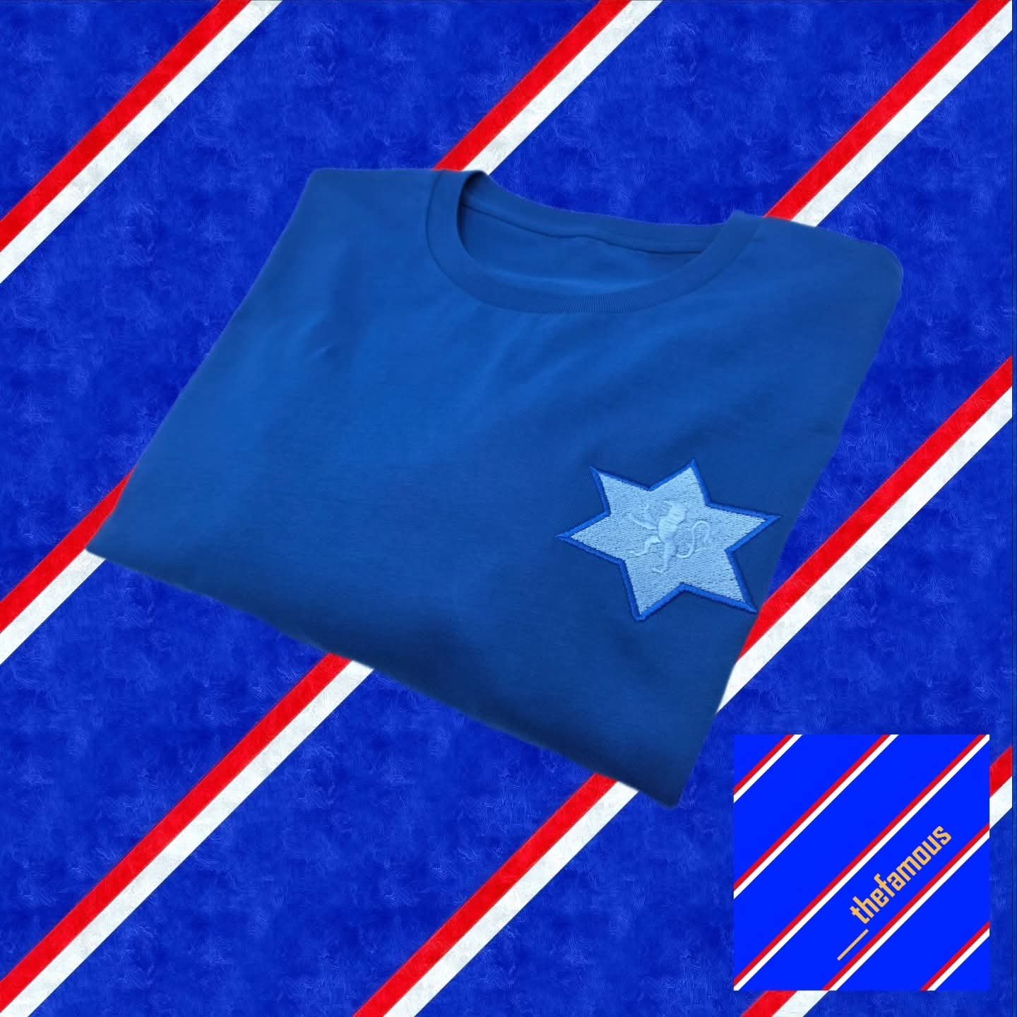 Royal blue unisex T-shirt with high quality detailed embroidered logo in red, white & royal blue on left breast.