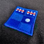 Iconic Wilkins. Black unisex T-shirt with high quality detailed embroidered logo in red, white, royal blue & silver. Also available in White - see other website listing.
